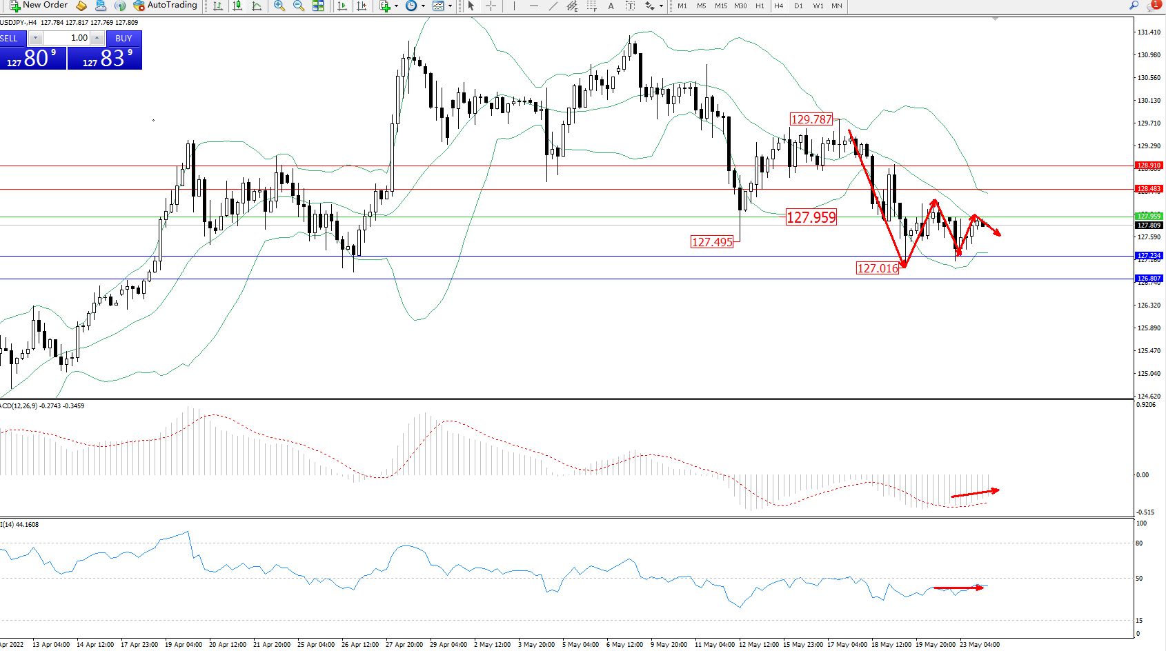 交易策略:127.959下方看跌,目标127.234、126.807