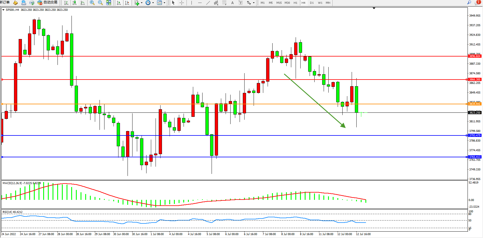 标普500指数7月12日(周二)收盘下跌35.29点,跌幅0.92%,报3819.14点;IMF警告:美国一季度GDP出现萎缩,而亚特兰大联储GDPNow等经济活动跟踪指标似乎表明,二季度GDP将再次出现萎缩。