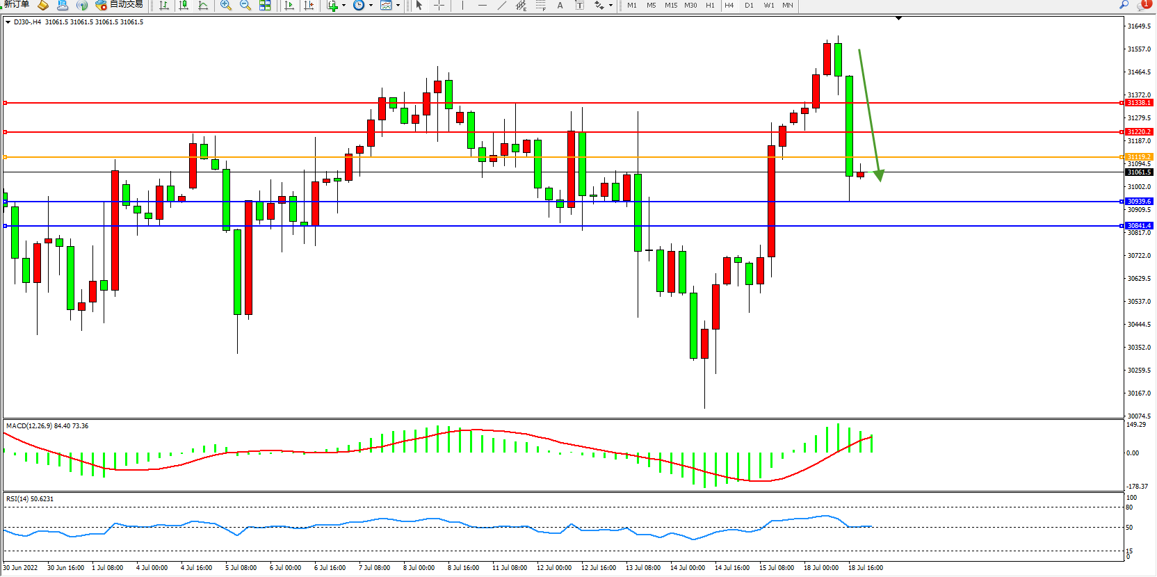 道琼斯指数7月18日(周一)收盘下跌216.51点,跌幅0.69%,报31071.75点;破纪录的高温天气将在美国中部继续持续一周,并威胁到已经成为酷热天气靶心的得克萨斯州,高温可能会将电力需求推至新的高度。