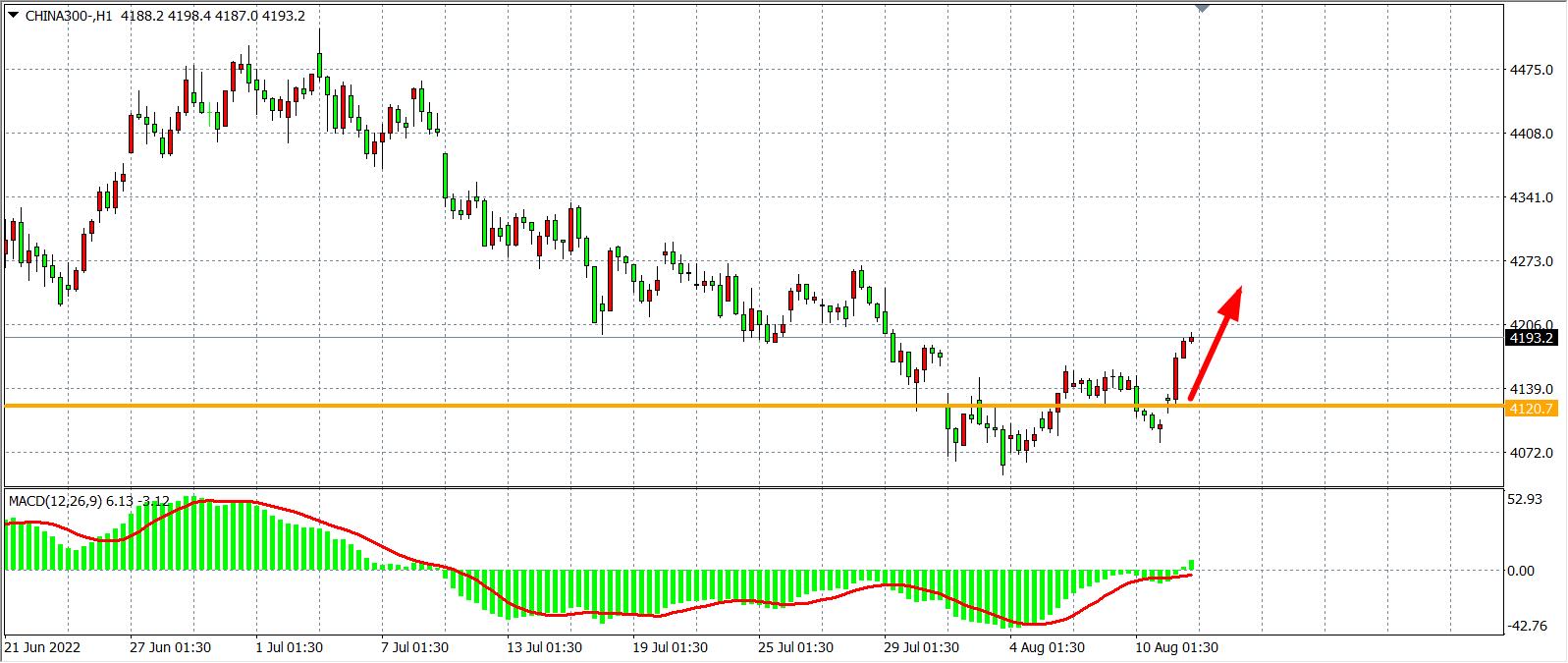 1小时图看,沪深300接连上破4120-4160,多头表现强势同时MACD于零轴之上量能急剧放大,显示短期多头动能强劲,目前支撑已上移至4160,在该位之上看反弹4250-4300