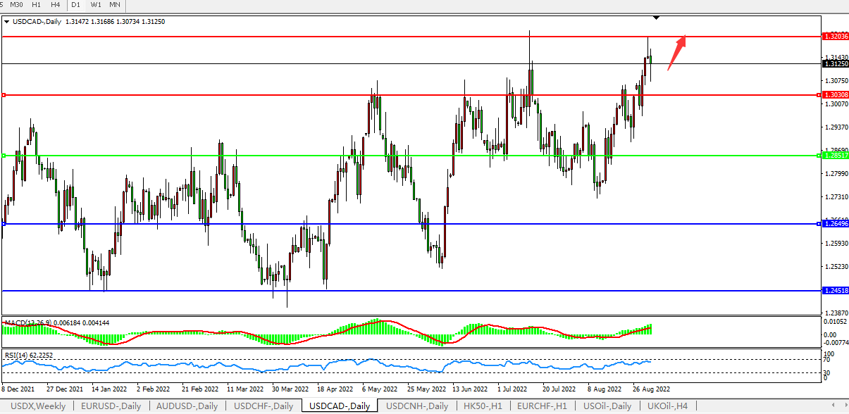 USDCAD:冲高乏力,回落修整 USDCAD  CADJPY