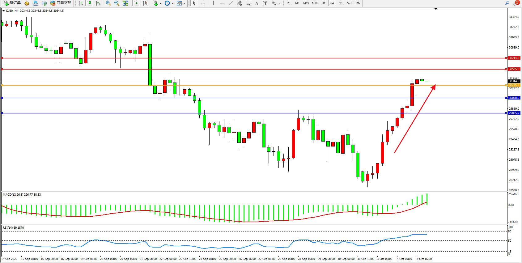 道琼斯指数10月4日(周二)收盘上涨826.09点,涨幅2.80%,报30316.98点;美国《国会山报》援引会计师事务所毕马威的一项新调查报道称,全球86%的首席执行官预计明年经济将出现衰退。