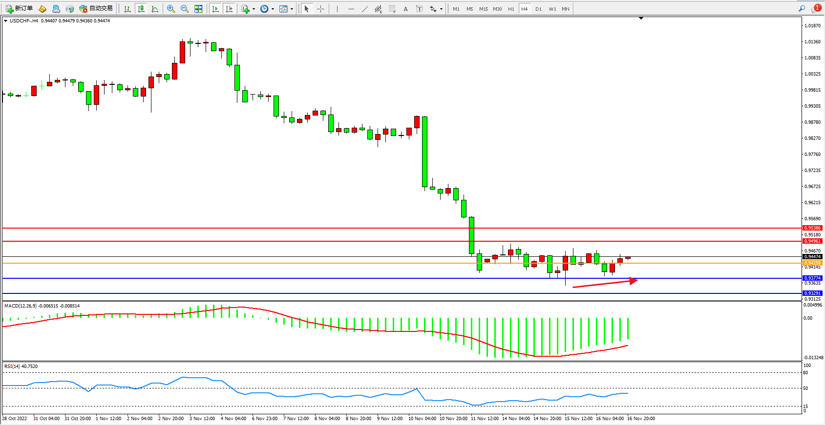 美元兑瑞郎维持0.94475附近震荡,美联储激进鹰派松动预期导致金价在最近两周飙升,但要继续走高必须找到新的催化剂。不确定因素可能存在,比如乌克兰局势更激进、更直接的升级。市场正试图评估波兰导弹事件风险,判定是否会导致紧张局势升级,还是说会在未来几天内缓和。