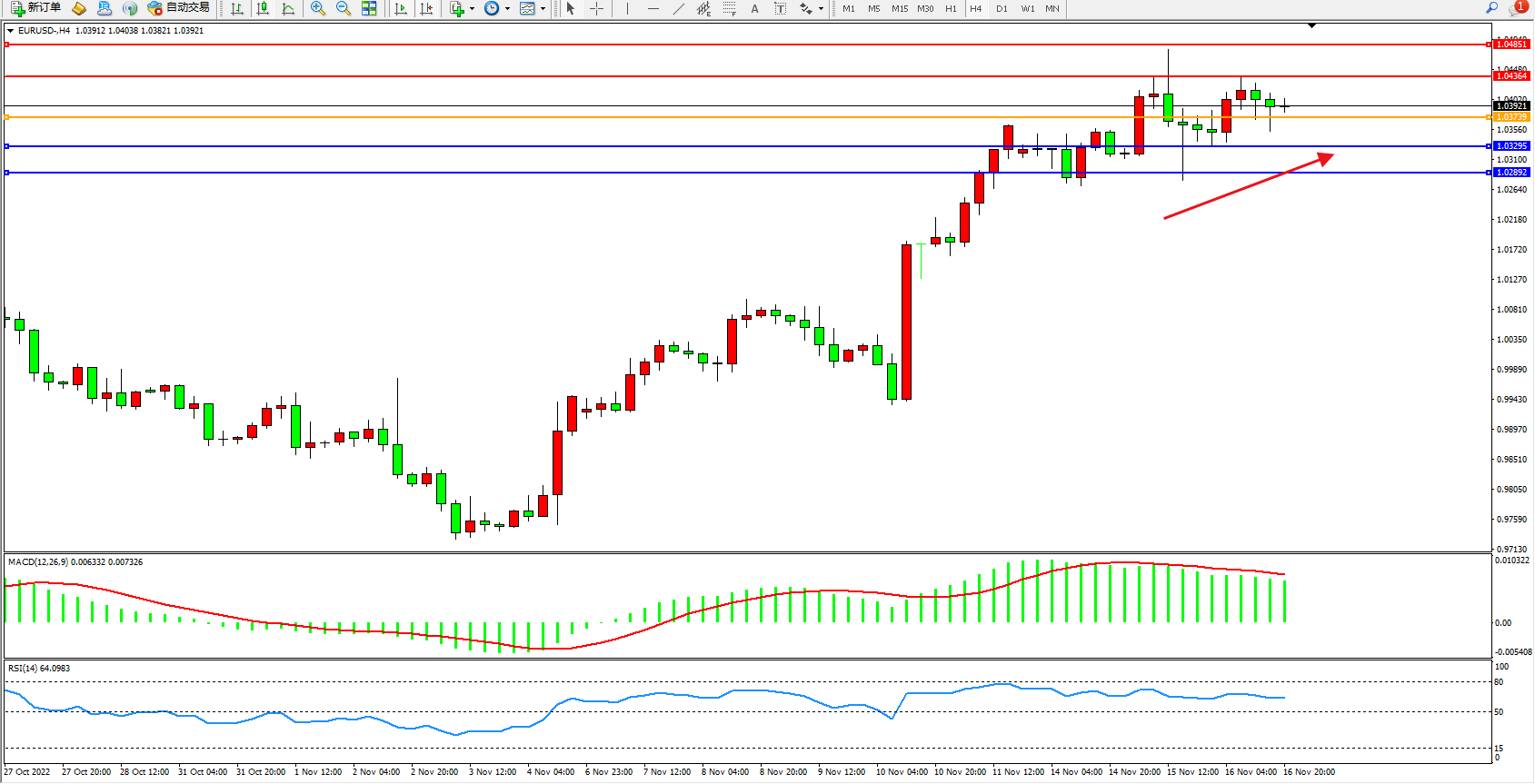 4小时图看:高位短期阶梯震荡上移,短期看涨情绪笼罩,市场多头开始伺机入场不断窄幅震荡上移,MACD指标处于多头区域整理平移,RSI指标处于多头区域窄幅徘徊;