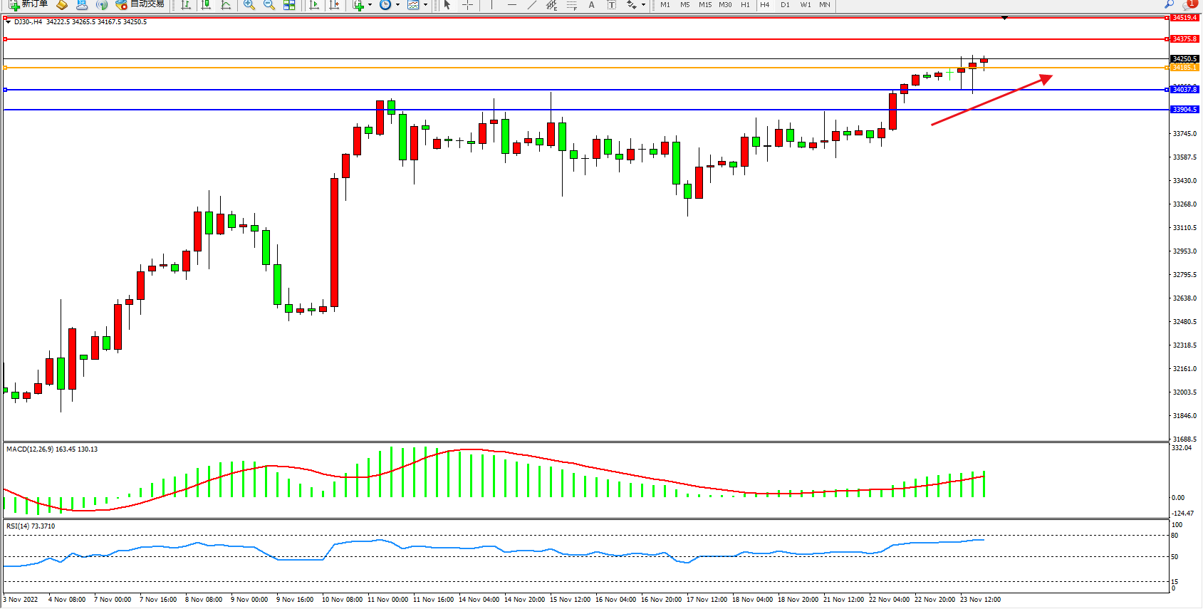 道琼斯指数11月23日(周三)收盘上涨95.96点,涨幅0.28%,报34194.06点;美国上周初请失业金人数增幅超过预期,但这可能并不意味着就业市场状况出现实质性转变。目前就业市场依然紧张。