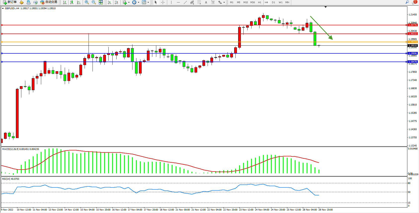 英镑美元GBPUSD ——4小时K线图显示: