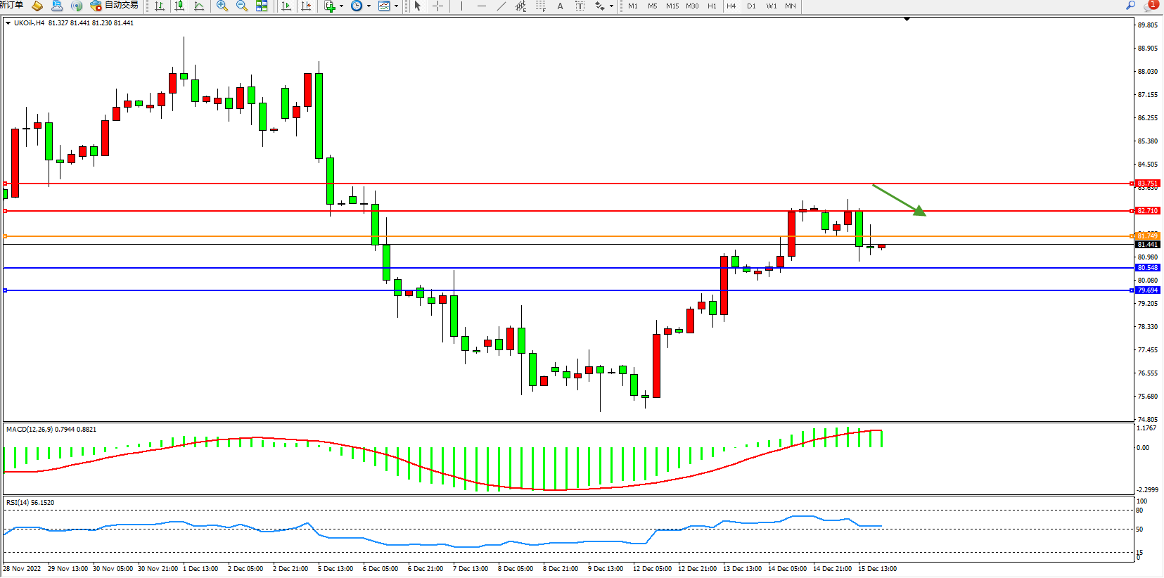 布油维持81.441附近震荡,由于美联储就货币政策发出鹰派指引,再次引发对经济增长的新担忧,提振美元并推低大宗商品价格,油价承压。