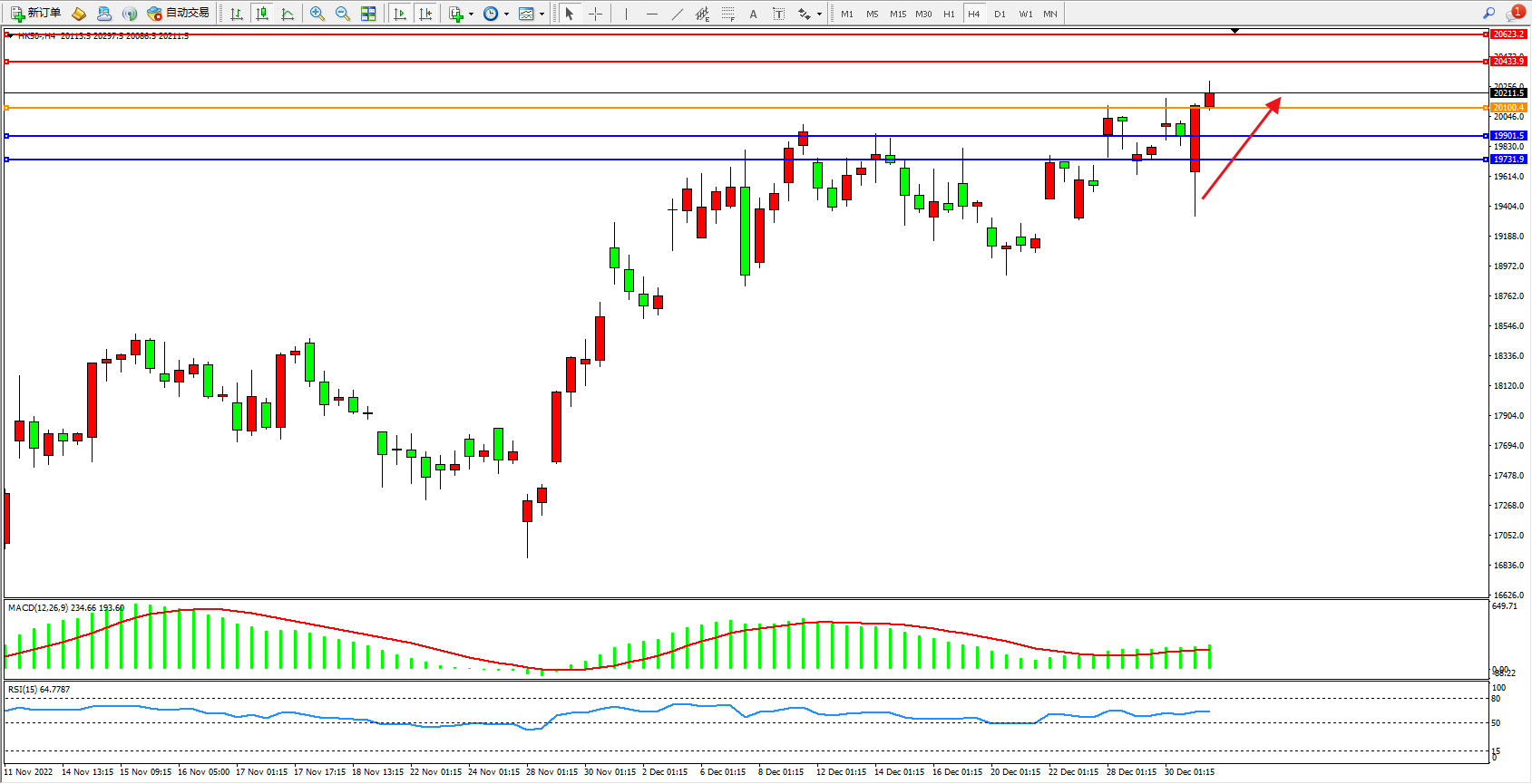 香港恒生指数1月3日(周二)收盘上涨363.88点,涨幅1.84%,报20145.29点;2023年港股首个交易迎来开门红,三大指数皆呈低开高走行情,行业板块普涨。恒指最终收涨1.84%,重回2万点上方,国指涨1.92%,恒生科技指数涨2.53%。权重科技股表现活跃支撑大市上涨,快手、网易、腾讯均涨超3%,南下资金净流入62.79亿港元,大市成交额为1206亿港元。