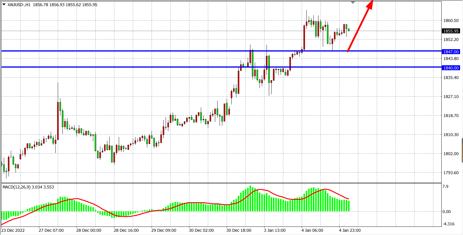 交易策略:在1847.00 之上看涨,目标1865.00 1880.00