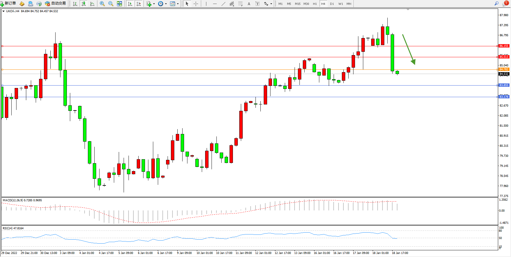 布油UKOil——4小时K线图显示: