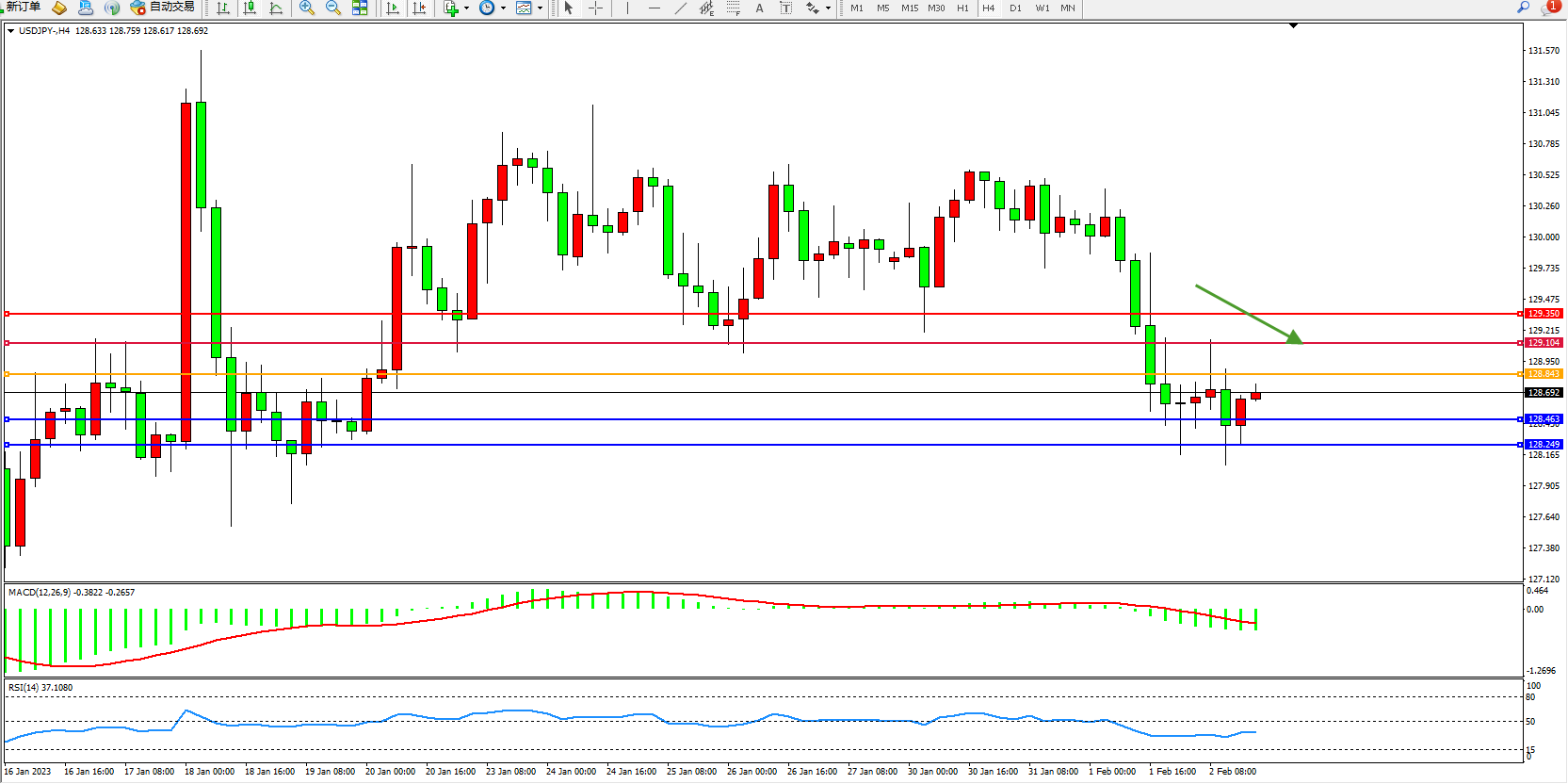 美元兑日圆维持128.692附近震荡,在美联储如期加息以及美联储主席鲍威尔发表被解读为鸽派的言论后,美元兑日元跟随美债收益率下跌,但跌幅有限,远高于1月低点,市场预期和美联储的点阵图存在分歧。疲软的数据看起来是美元兑日元跌向1月低点的原因。