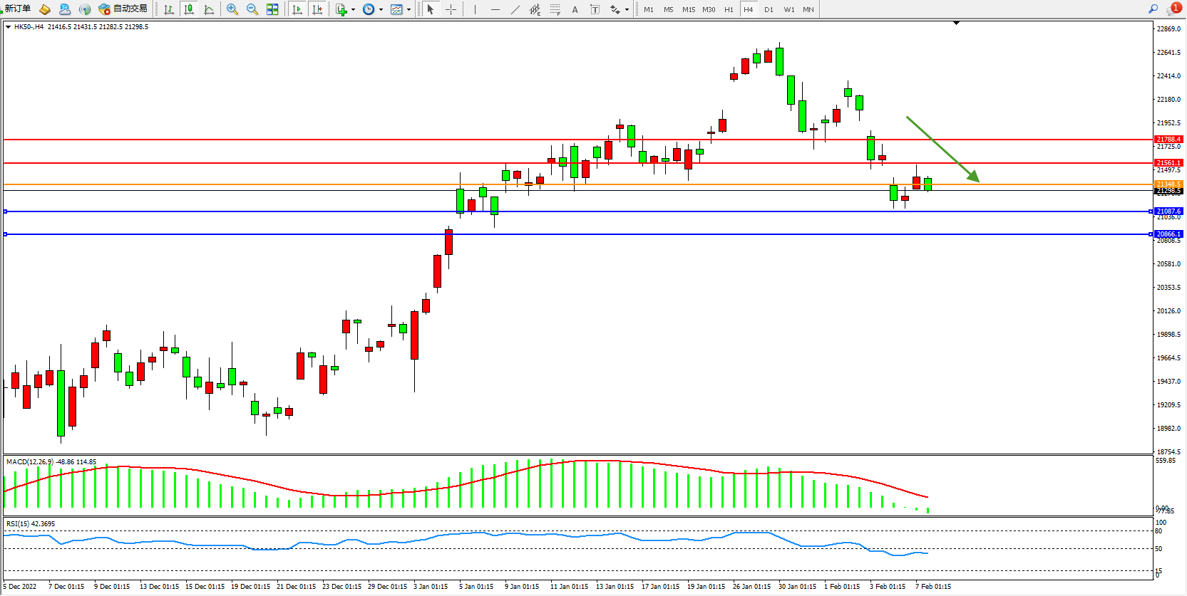 恒指HK50 4小时图