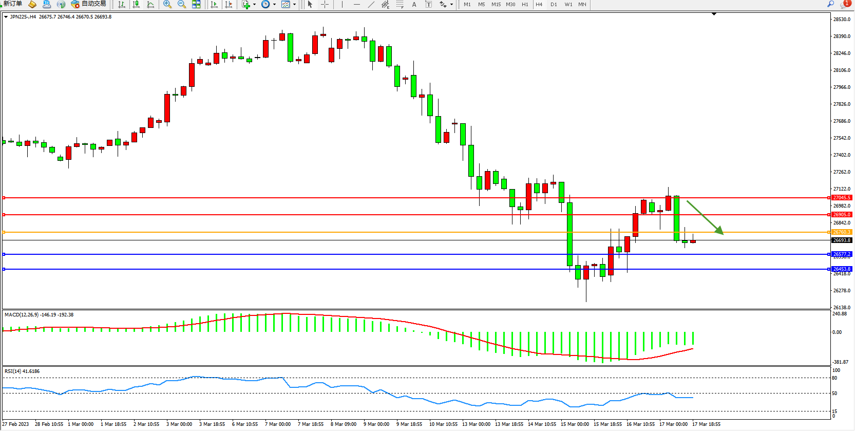 日经225指数3月17日(周五)收盘上涨296.89点,涨幅1.10%,报27307.50点。日本央行行长黑田东彦:理论上无法确定负利率政策能走多远。可以进一步降低短期利率,但不能透露降低的幅度。日本央行行长黑田东彦:我相信利率仍有下调至-0.1%下方的空间。