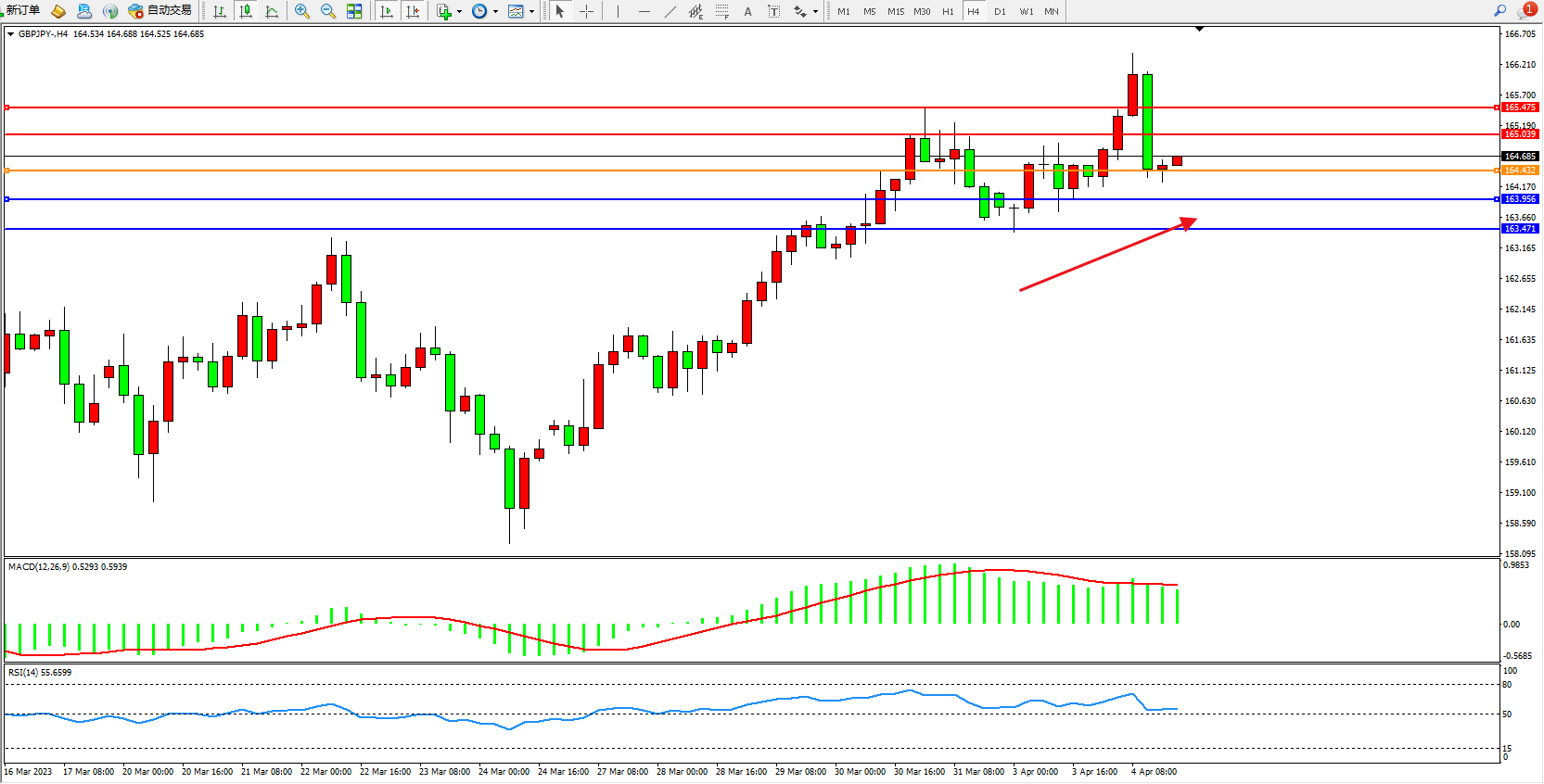 英镑兑日圆维持164.684附近震荡,目前英国通胀率约为10.4%--是英国央行2%目标水平的五倍多,在七国集团(G7)中居于首位。英国央行已经连续11次提高利率,下一次会议定于5月举行。市场认为下次会议进一步加息25个基点的可能性为66%,保持利率不变的可能性为34%。