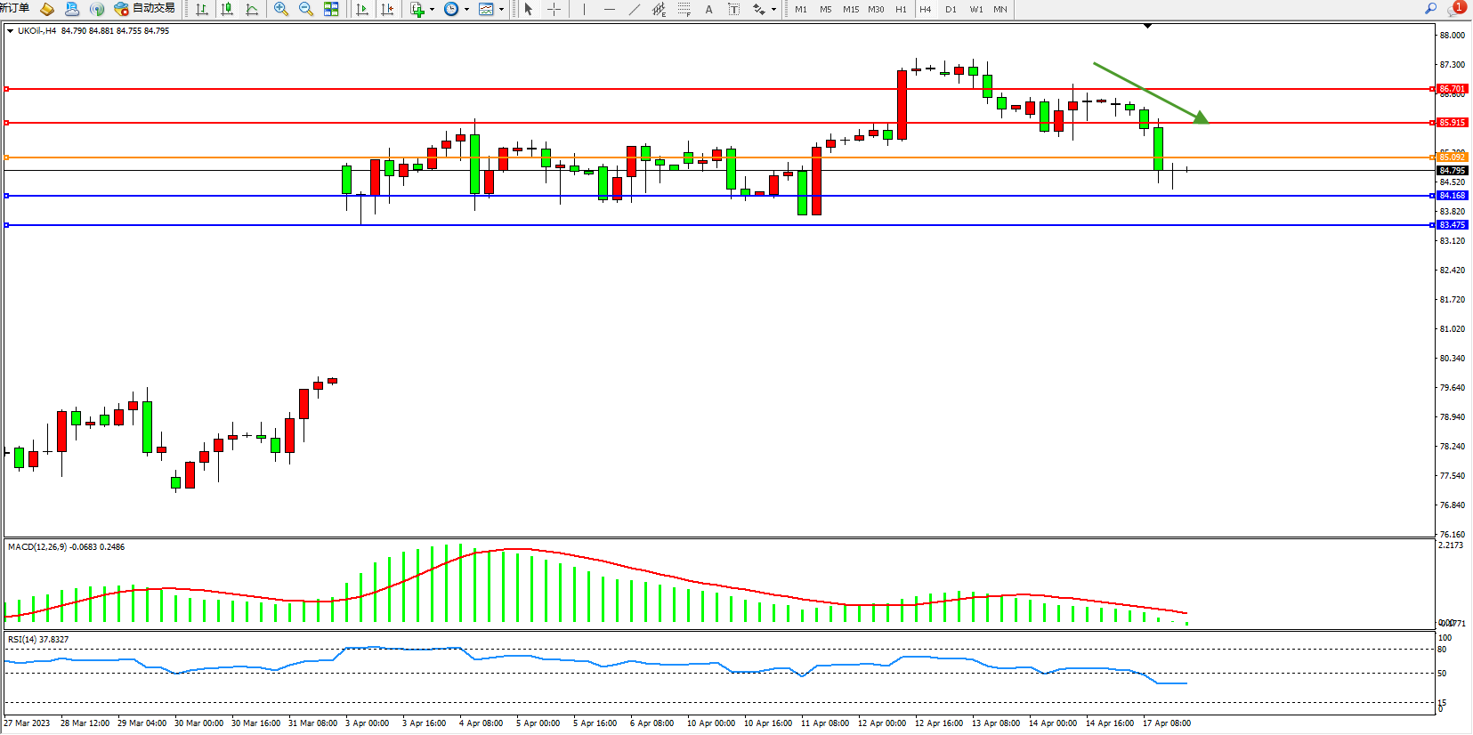 布油UKOil——4小时K线图显示: