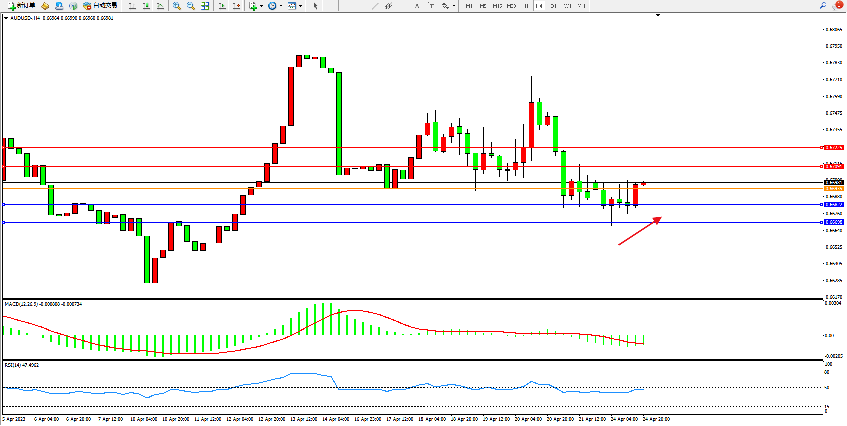 支撑位:0.66822 0.66698