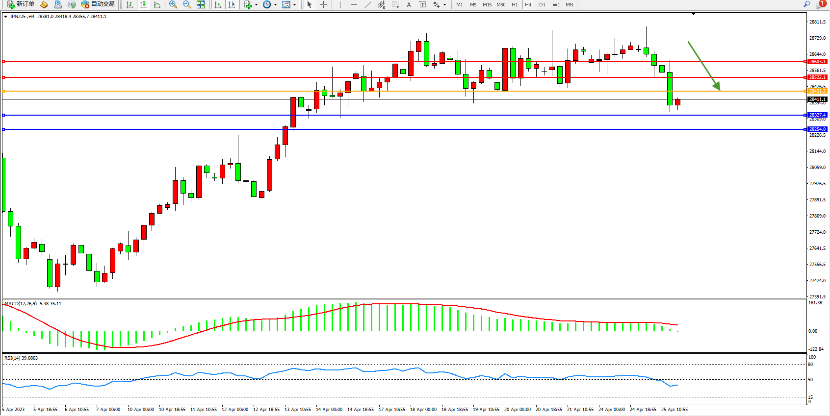 日经225指数4月25日(周二)收盘上涨45.98点,涨幅0.16%,报28639.50点。日本央行行长植田和男:日本的通胀是因成本驱动因素而上升。货币政策的效果存在极大滞后性。现在收紧政策将进一步虚弱通胀。现在收紧货币政策可能会导致未来严重局面。将权衡通胀疲软的风险,继续放松货币政策。