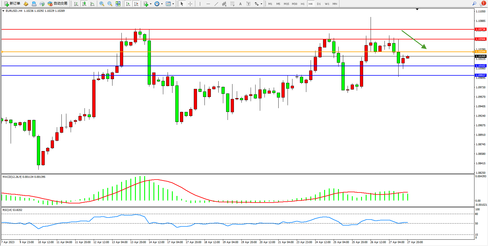 欧元兑美元维持1.10269附近震荡,投资者预测欧洲央行在进一步加息方面仍有一段路要走,欧元继续表现优异。瑞士信贷将欧元兑美元二季度末的目标位设定在1.1250,