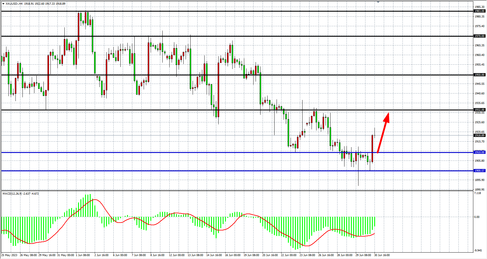 现货黄金XAUUSD 四小时图