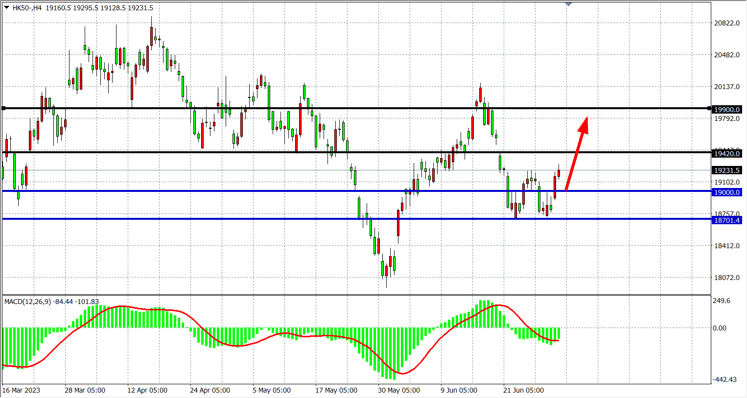 4小时图看,恒指在18700一线获得支撑反弹,再度上破1900关口,MACD量能维持在零轴之下,但趋势反弹动能较强,日内重点关注1900一线得失。