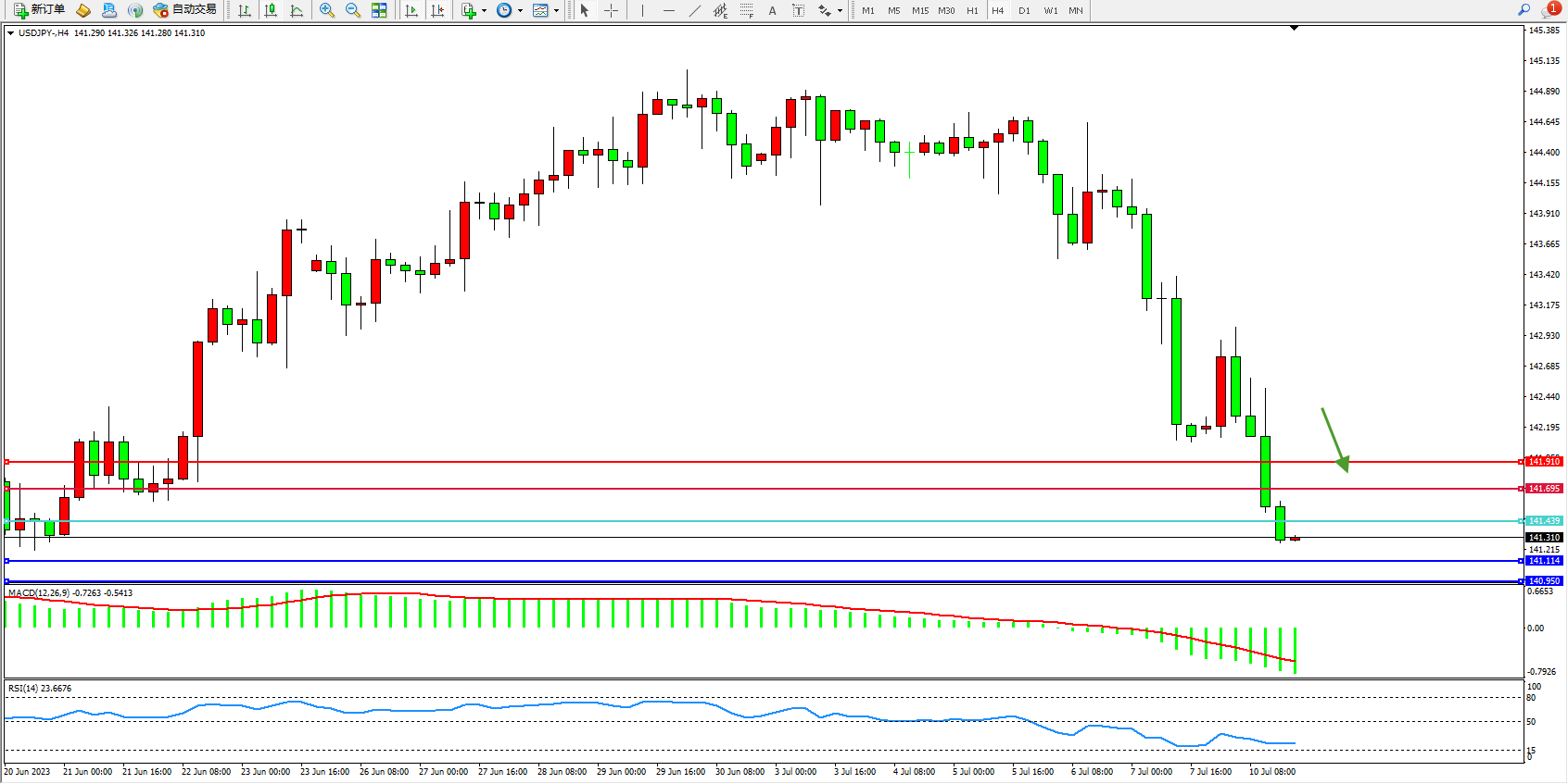 阻力位:141.695  141.910