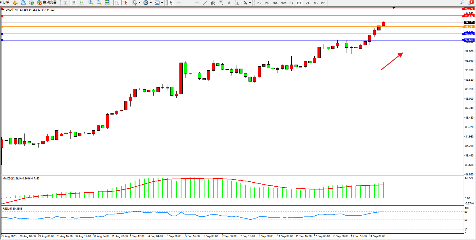 布油UKOil——4小时K线图显示: