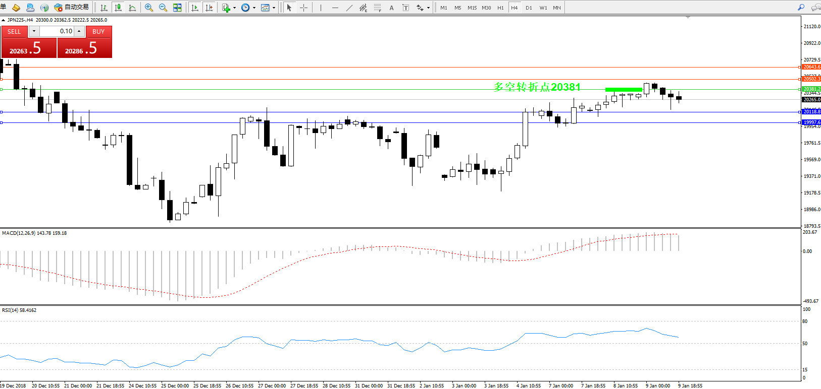 日经指数JPN225——4小时K线图: