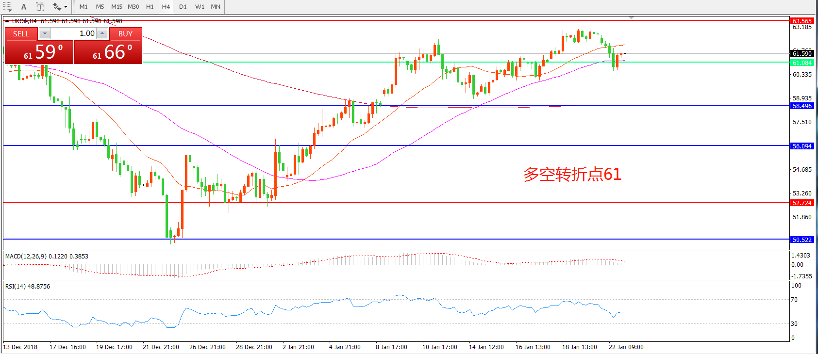 多空转折点:61.00