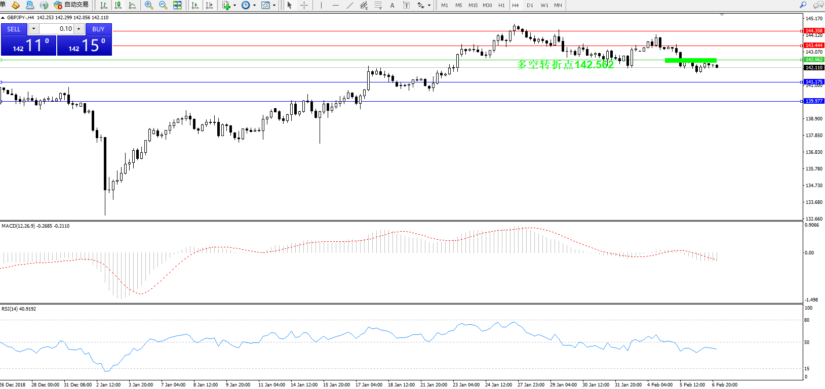 交易策略:142.562下方看跌,目标141.175139.977