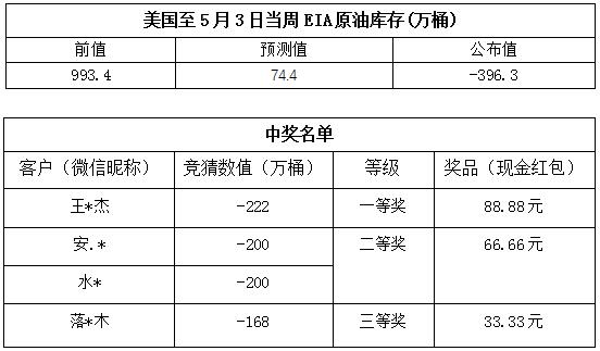 2019年5月第1期“EIA大竞猜活动的中奖结果已出,获奖信息如下: