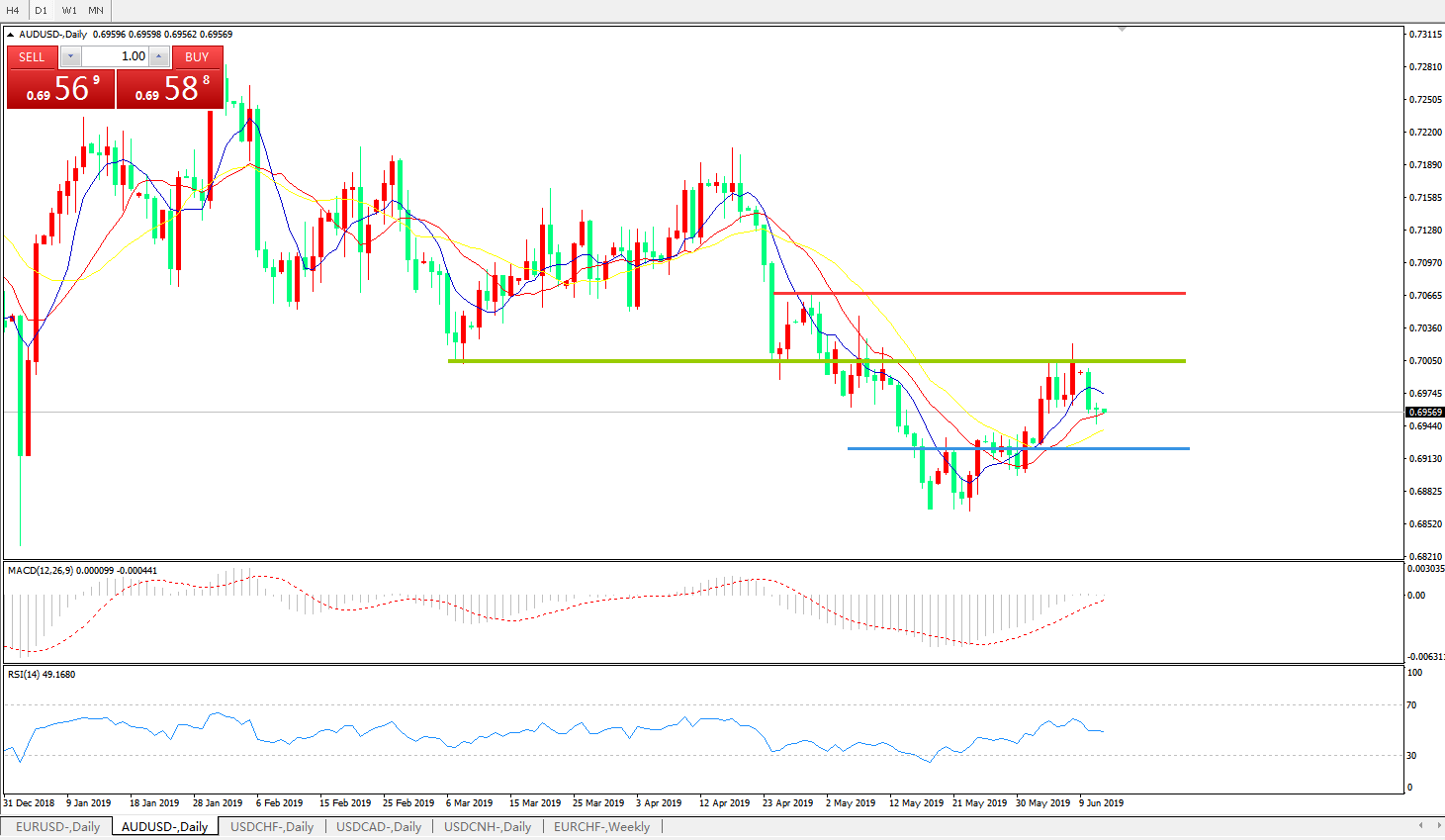 交易策略:0.7000下方看跌,目标0.6900、0.6860