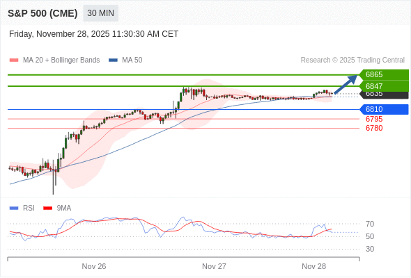 在 6810 之上,看涨,目标价位为 6847 ,然后为 6865 。