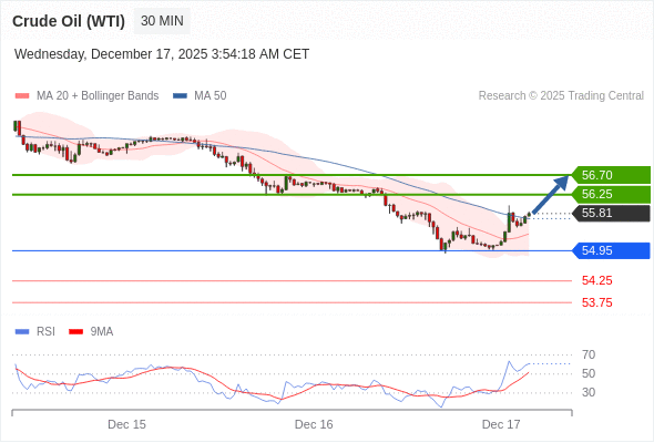 在 54.95 之上,看涨,目标价位为 56.25 ,然后为 56.70 。