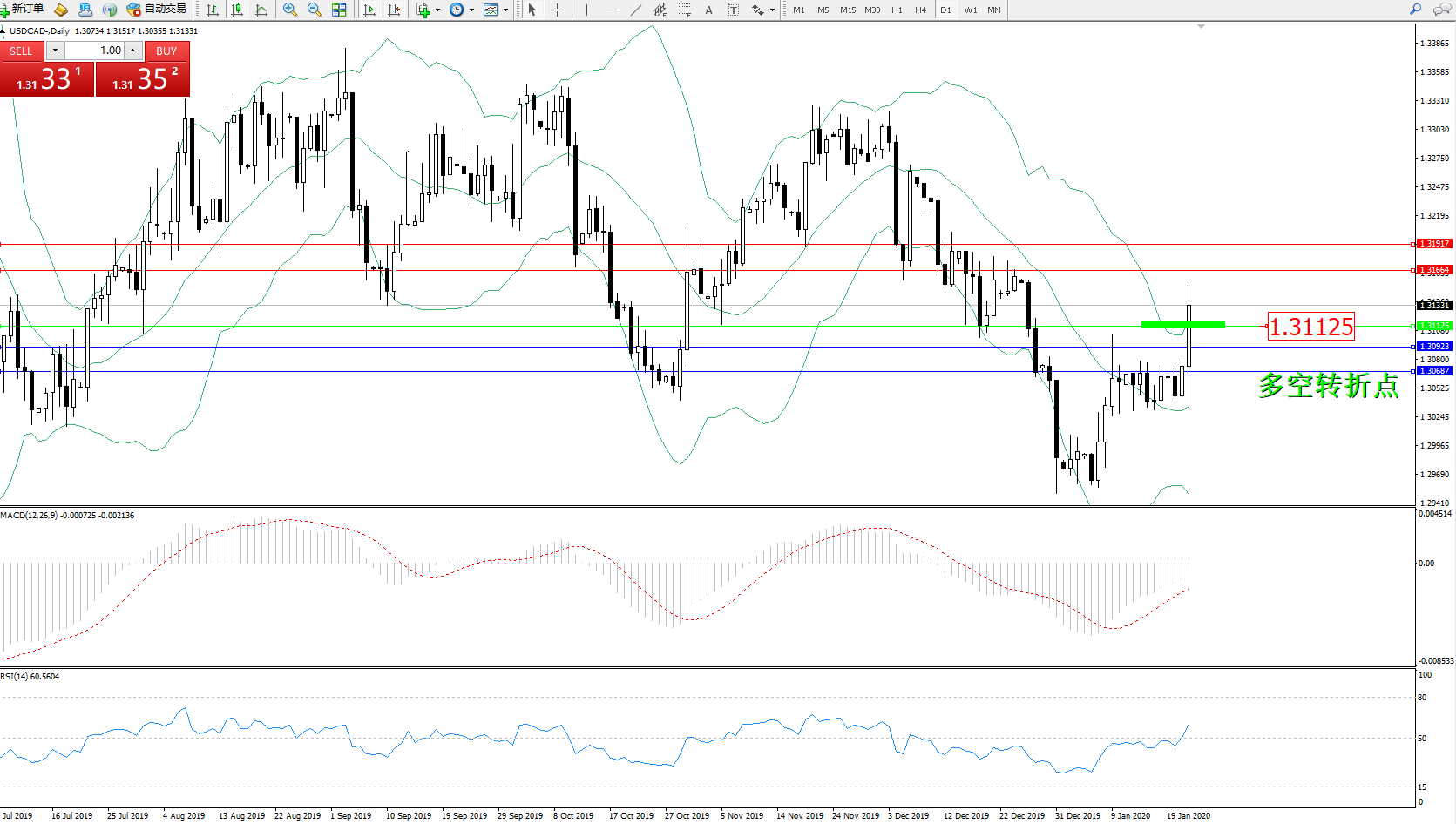 交易策略:1.31125上方看涨,目标1.31664、1.31917