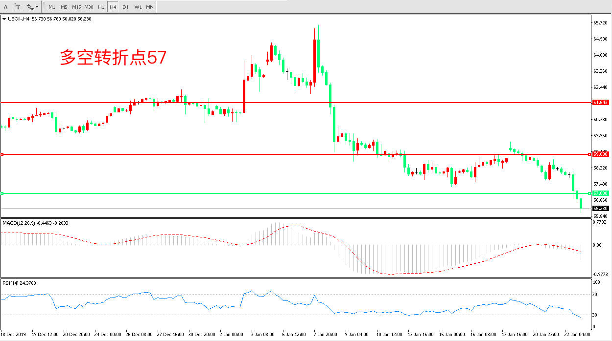 交易策略:在57.00之下看跌,目标55.00 52.00