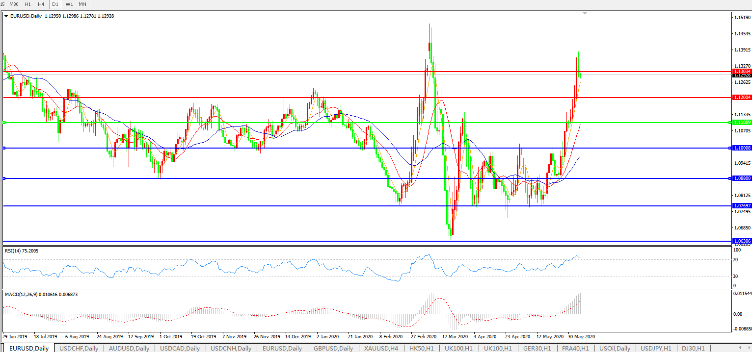 大华银行讨论了欧元兑美元的技术性前景,预期其将在未来数周内进一步向着1.1660上涨。欧元兑美元在目前的1.1340水平,月度指数平滑移动平均线 (MACD)已经交叉进入正面领域。然而,唯有在接近6月底才能确认看涨交叉;欧元兑美元的月度指数平滑移动平均线交叉并不寻常,可以作为长期触底或登顶的可靠信号。目前的涨势开始于大约两周前,目前已经迅速逼近周趋势线阻力位1.1390。如能突破这一水平将大幅提升欧元兑美元突破3月份高位1.1496的可能性。展望未来,下一个中长期阻力位水平位于1.1660。这一水平为月趋势线,如欧元兑美元可以突破这一阻力位,将或多或少确认3月份低位1.0635位主要的长期底部,也就是说,1.0635位置在未来数月内都可能不会再度出现。