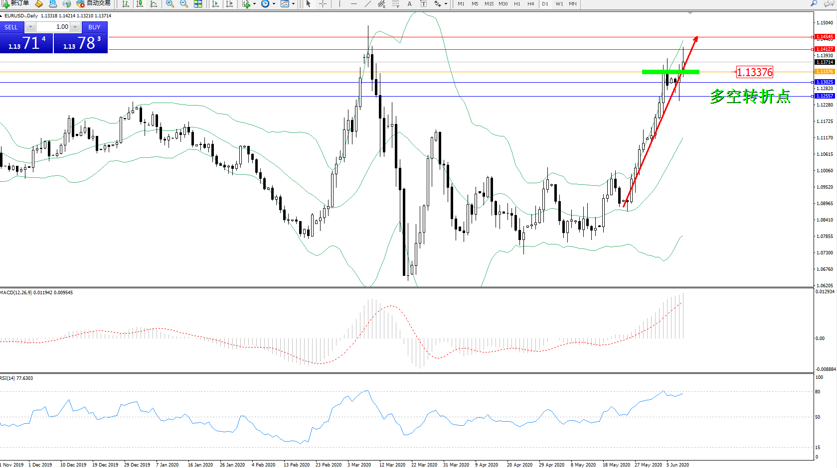 交易策略:1.13376上方看涨,目标1.141271.14545