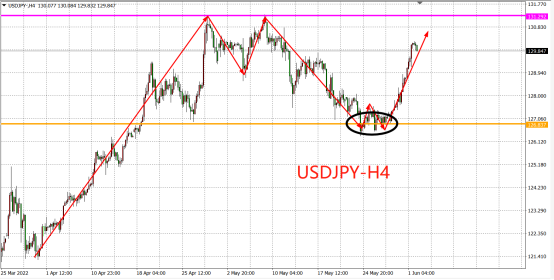 目前美元兑日元已连续出现补涨趋势,且上涨的力度正在加强,经过5月份连续的回调后,美日在前低点126.80附近获得企稳反抽,上方有望重新挑战前高点131,若继续破位前高下一阶段目标上看140-150附近,主选策略宜以逢低买涨为主。