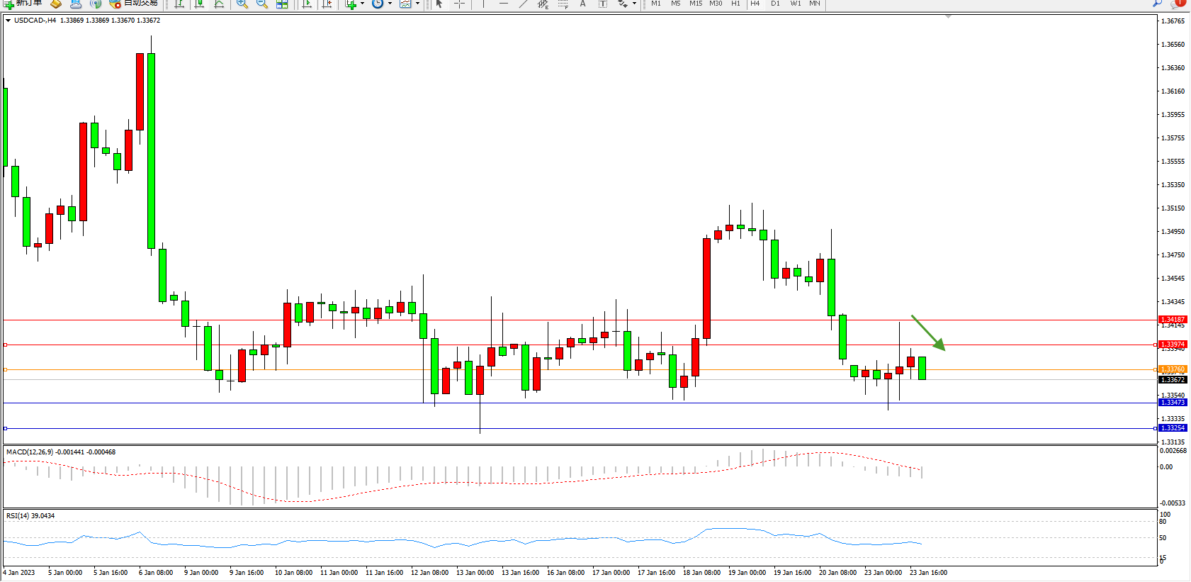 交易策略:1.33760下方看跌,目标1.33473、1.33254